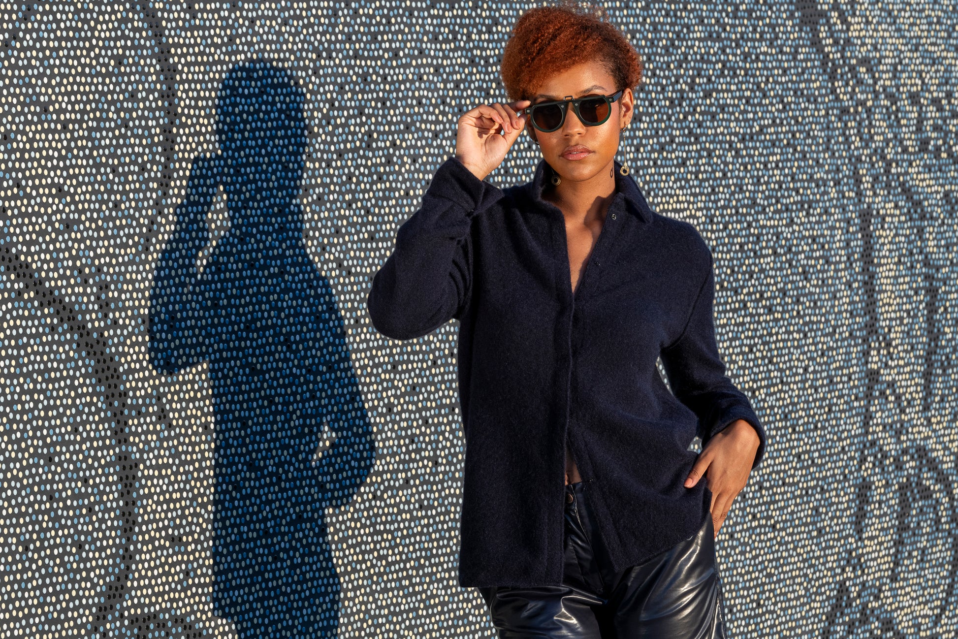 Camicia di maglia realizzata con un filato eccellente : caldo, morbido ed elastico. Il cashmere e seta elasticizzato.