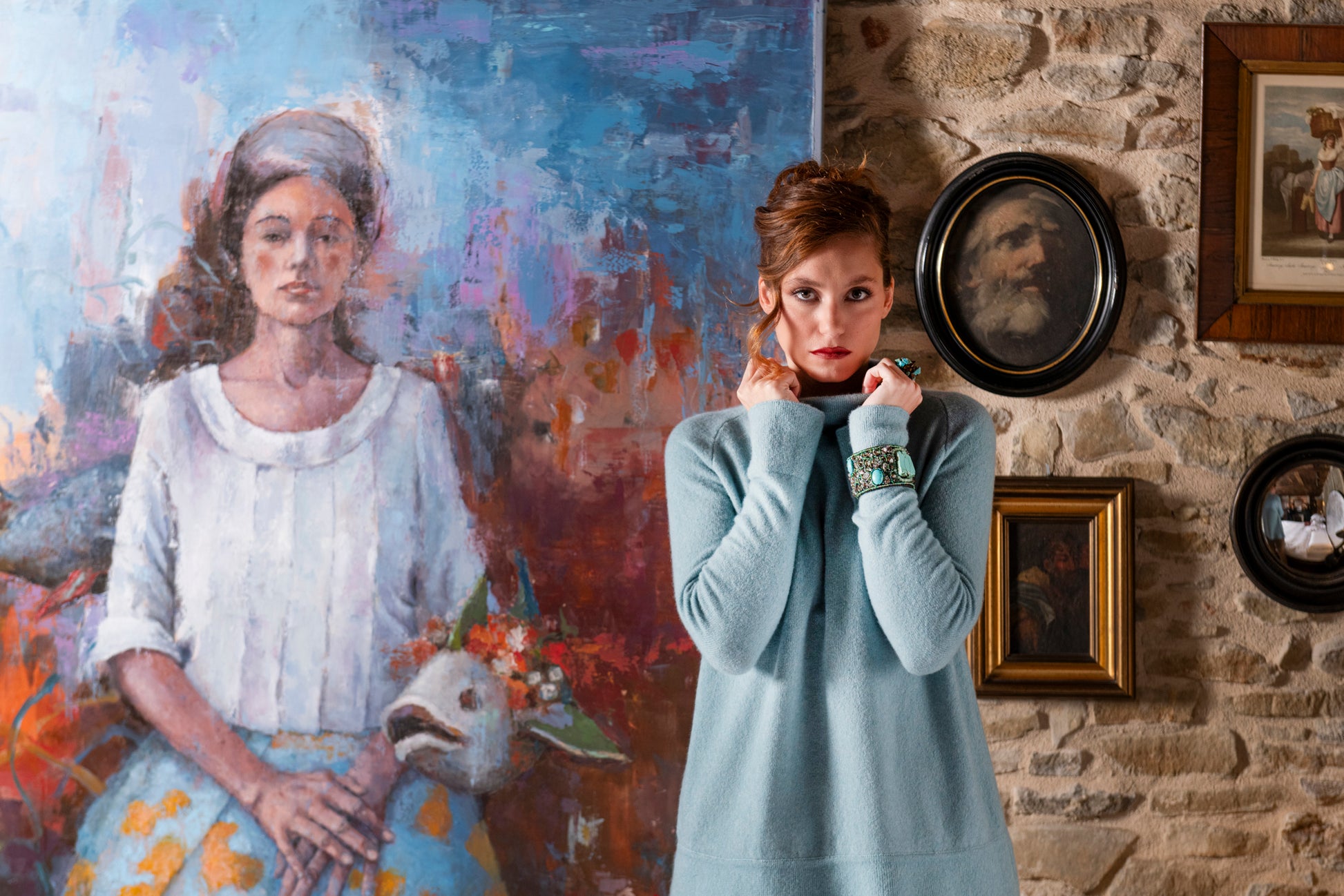 Maglia dalla linea ad "A" leggermente svasata e stondata, con un collo salito che rimane scostato. Capo adatto a chi necessita di calore e morbidezza.